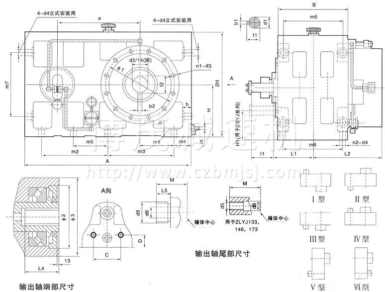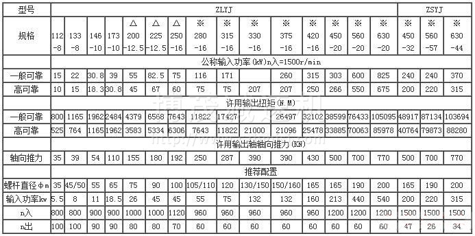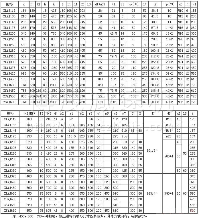 3、表列输出扭矩是主要选型依据。传动比可按用户需要调整。ZLYJ的i为6.3—20。